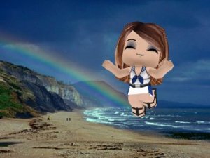 I fell asleep after I tried so hard doing this picture in Buddy poke thing. It’s my first picture in Buddy poke, so I chose a really a good view, the beach with a rainbow.