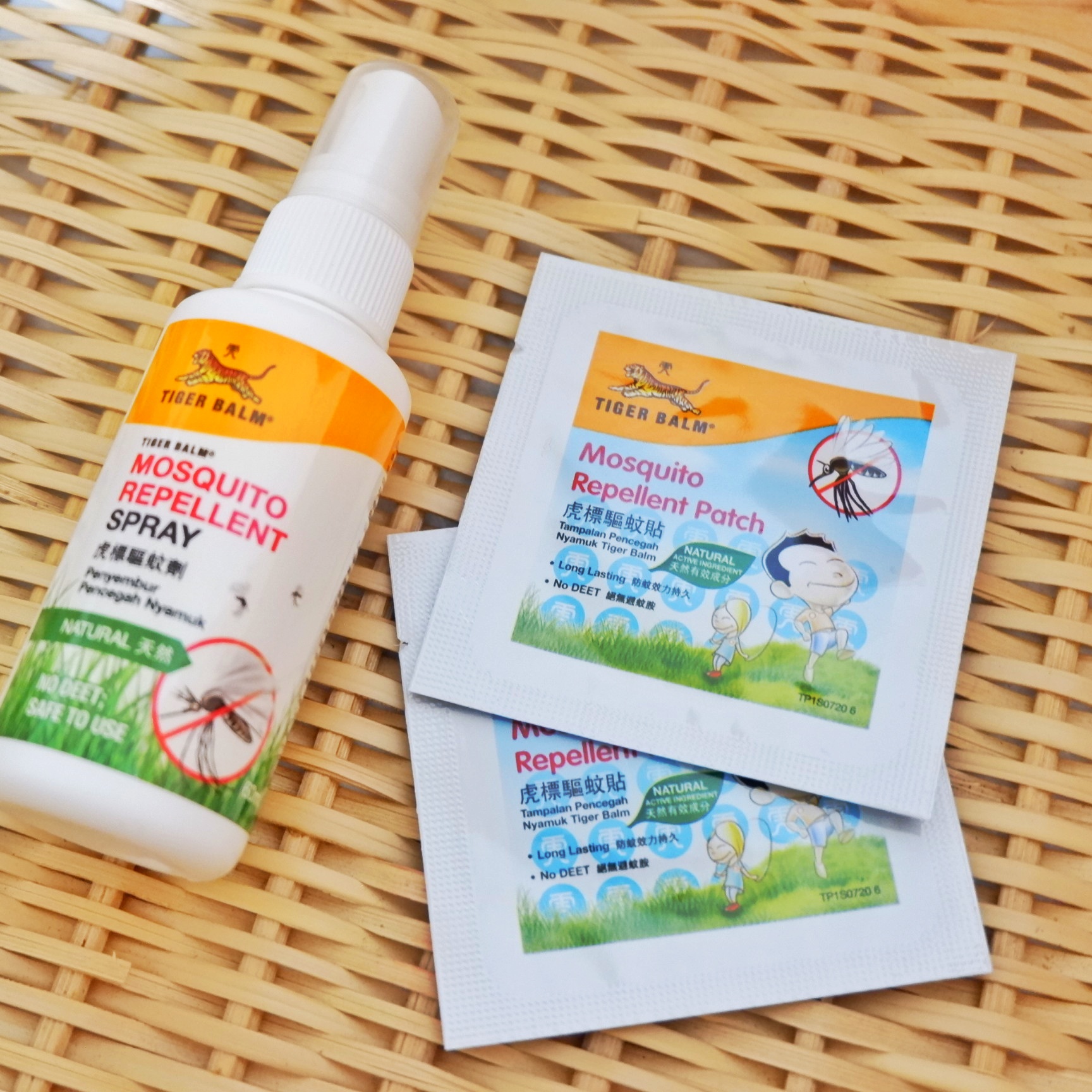 Tiger Balm Mosquito Repellent Spray has the unique blend of Tiger Balm formula and citronella oil to keep us safe from mosquito bites. Use in outdoor or a well ventilated area. Repeat spraying after 8 hours. Tiger Balm Mosquito Repellent Patch is effective, long lasting, and has a natural mosquito repellent formulation. It is Chemical DEET free. You can stick in the wall, bag or in the clothing. It comes in 10 individually-sealed patches in a box.
